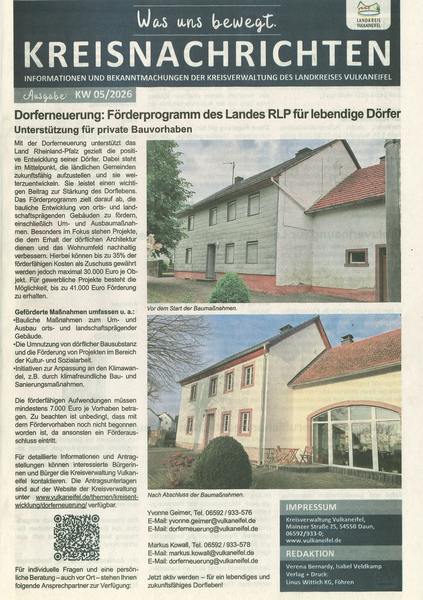 Aktuell entsteht in Fuchshofen an der Ahr ein neues Dorfgemeinschaftshaus. Bis Mitte nächsten Jahres soll auch dieses Projekt abgeschlossen sein.